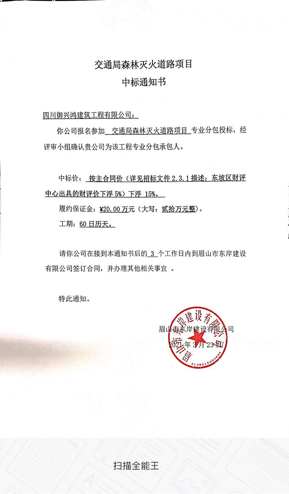 交通局森林滅火道路項(xiàng)目專(zhuān)業(yè)分包中標(biāo)公示